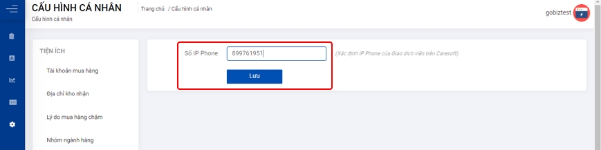 Bước 2: Tại đây, quý khách có thể thêm hoặc thay đổi số IP phone của giao dịch viên trên Caresoft