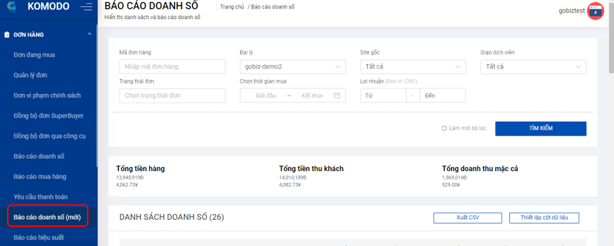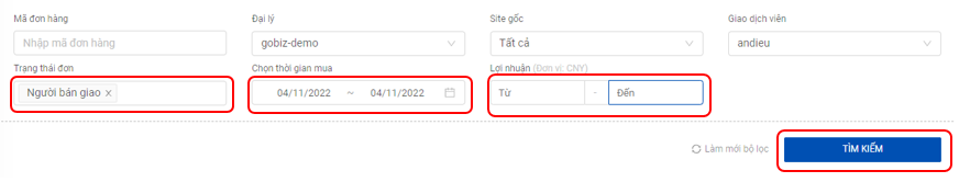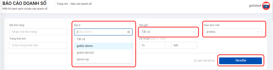 Mục đích: Để quý khách thống kê số liệu các đơn hàng của mỗi giao dịch viên hoặc đại lý trên các trang mua hàng