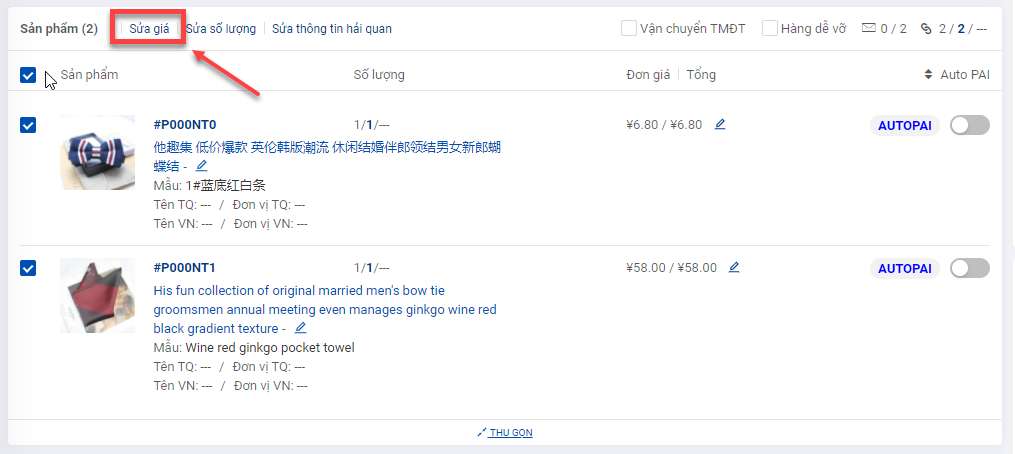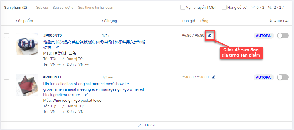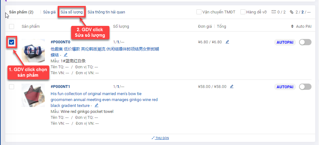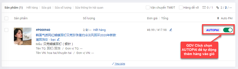 Bước 4: GDV click AUTOPAI để tự động thêm sản phẩm vào giỏ