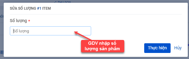 GDV nhập số lượng mới của sản phẩm và click Thực hiện để hoàn thành sửa số lượng sản phẩm