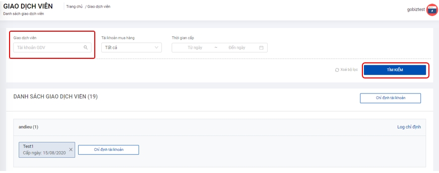 Hoặc tìm kiếm theo Tài khoản mua hàng.