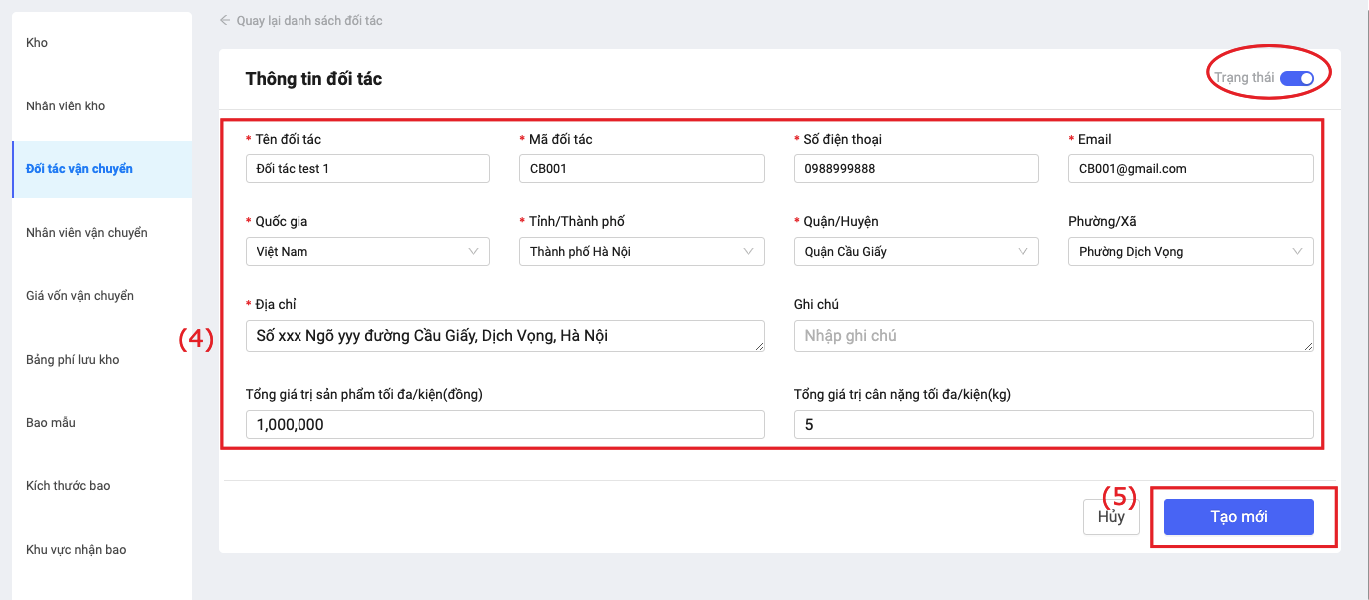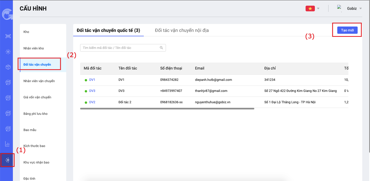 1. Cấu hình đối tác vận chuyển