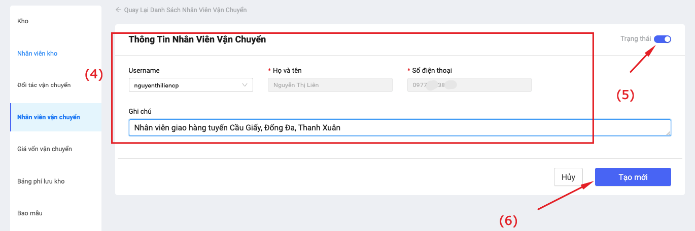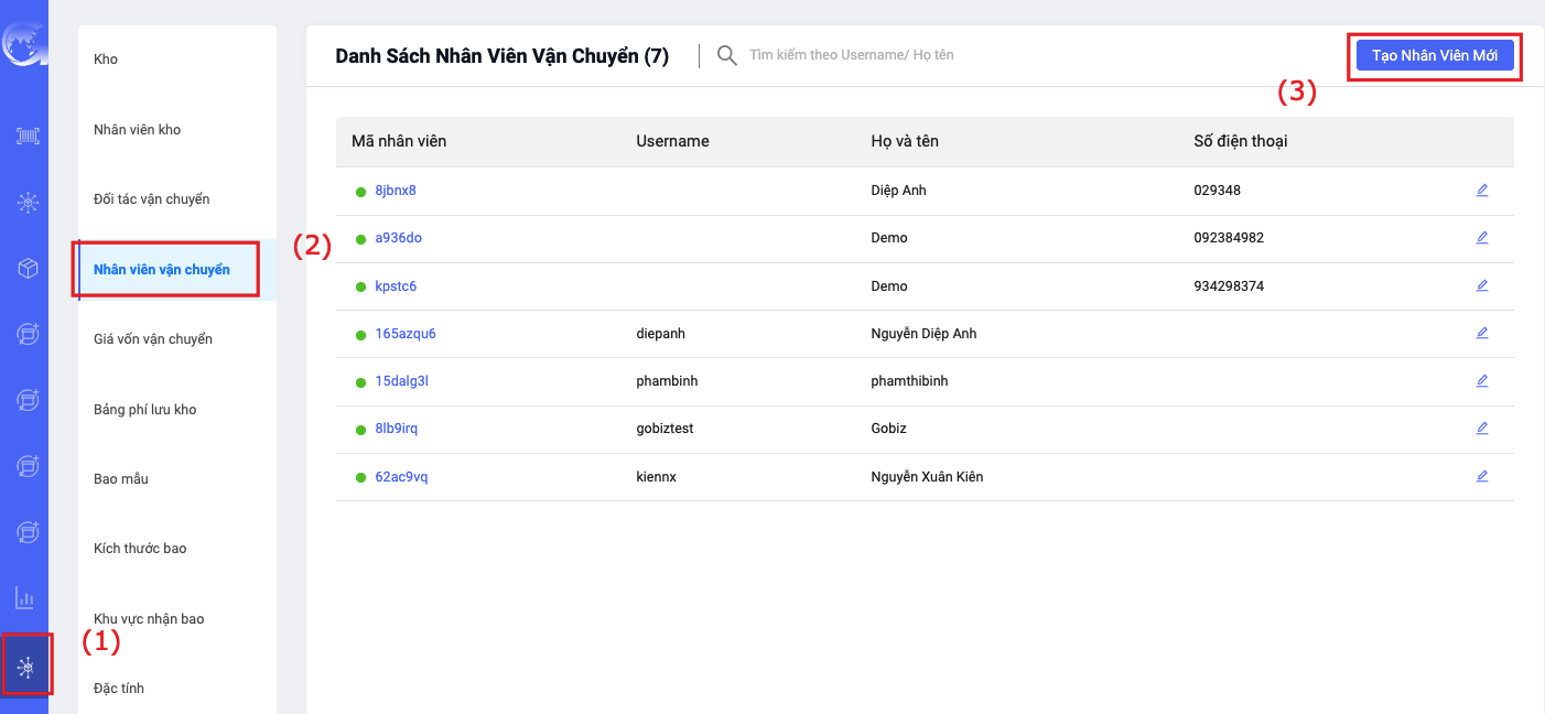 2. Cấu hình nhân viên vận chuyển