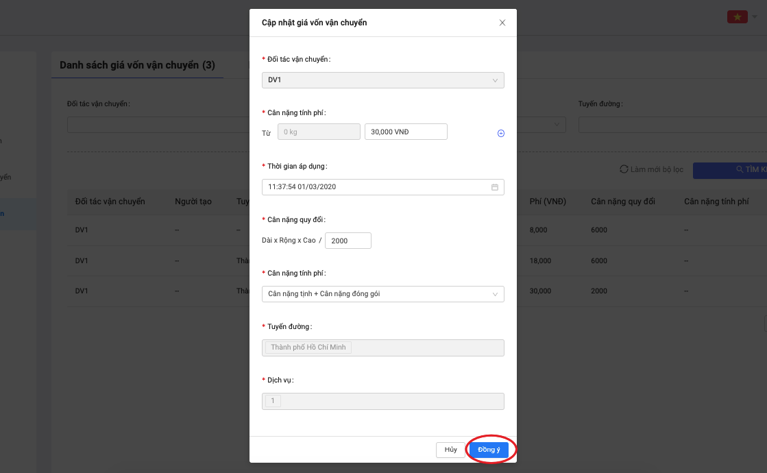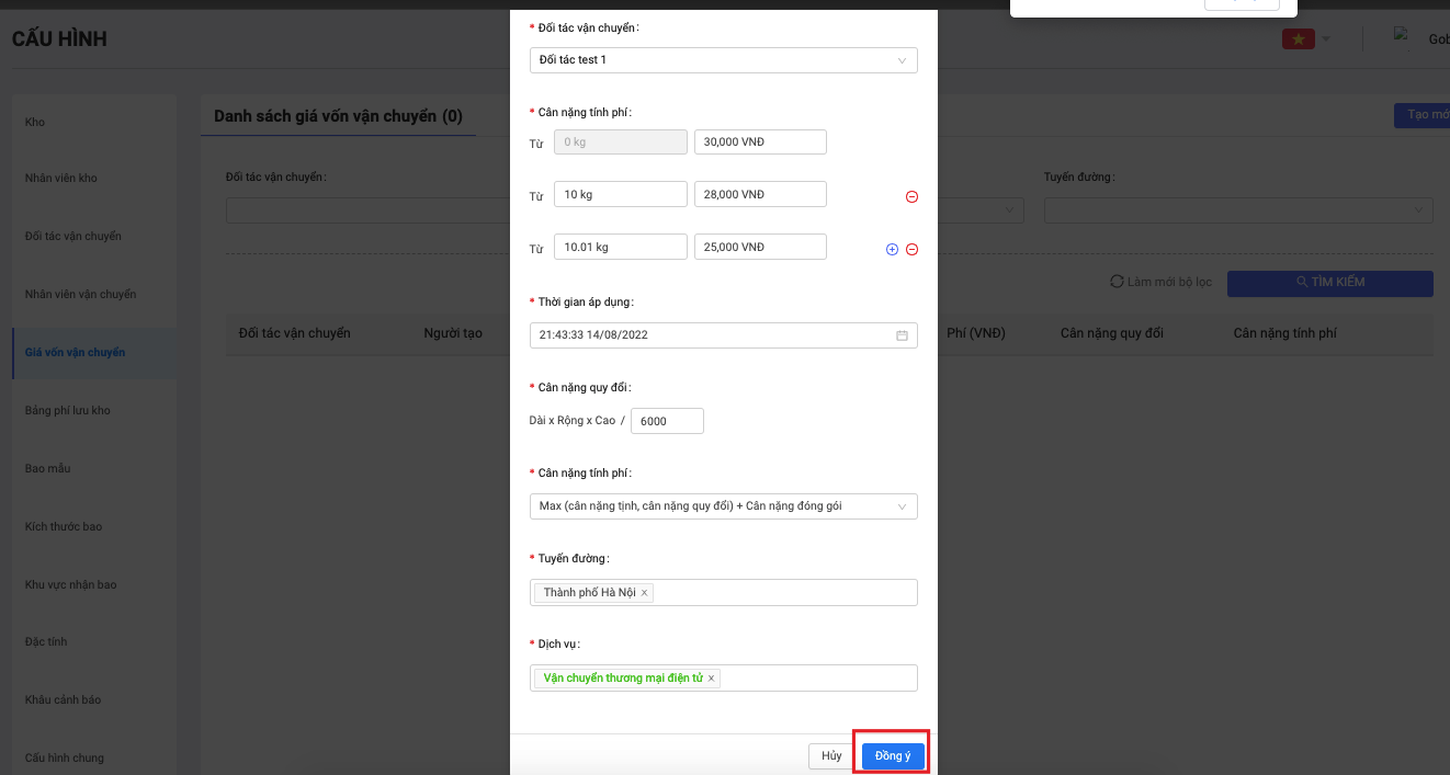 3.1 Cấu hình giá vốn vận chuyển mới
