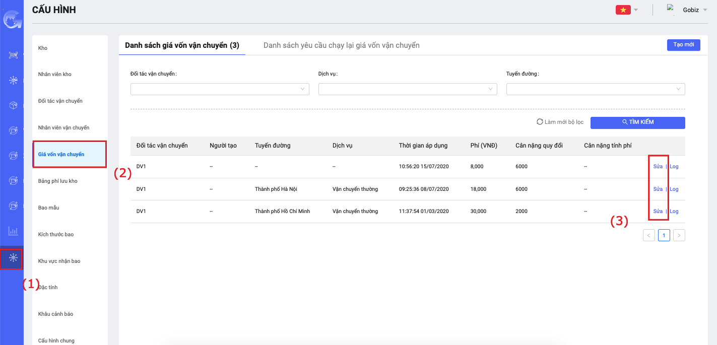 3.2 Sửa cấu hình giá vốn vận chuyển