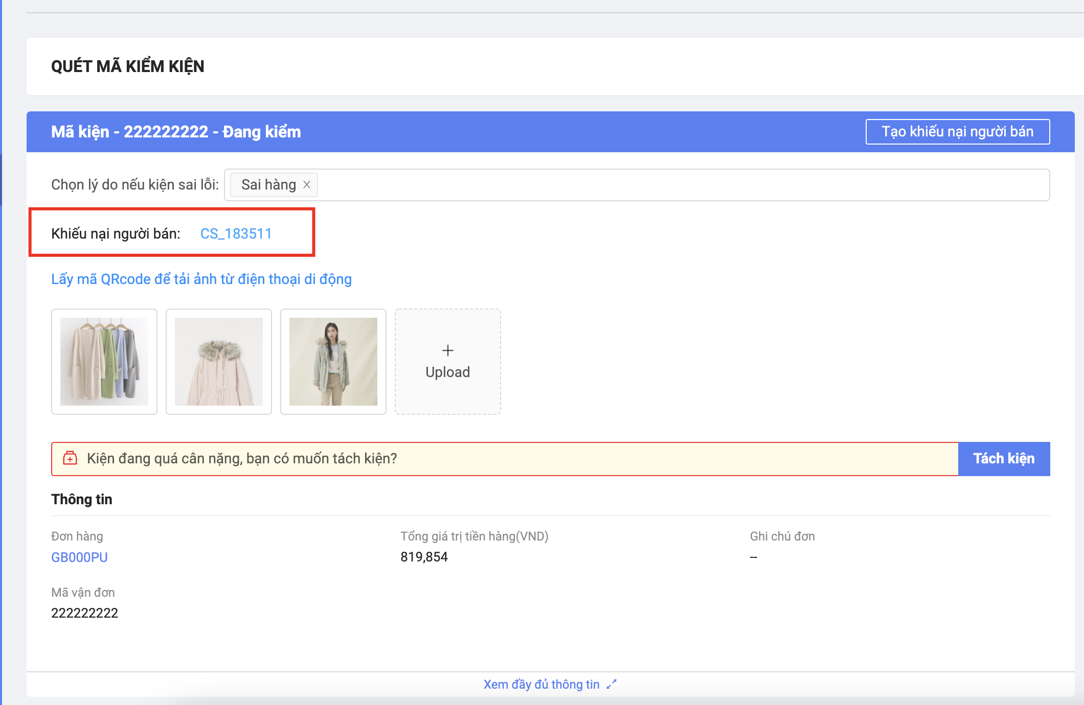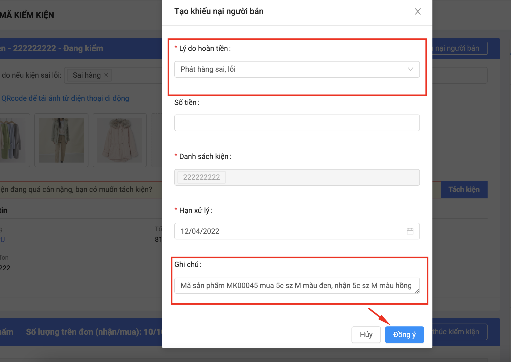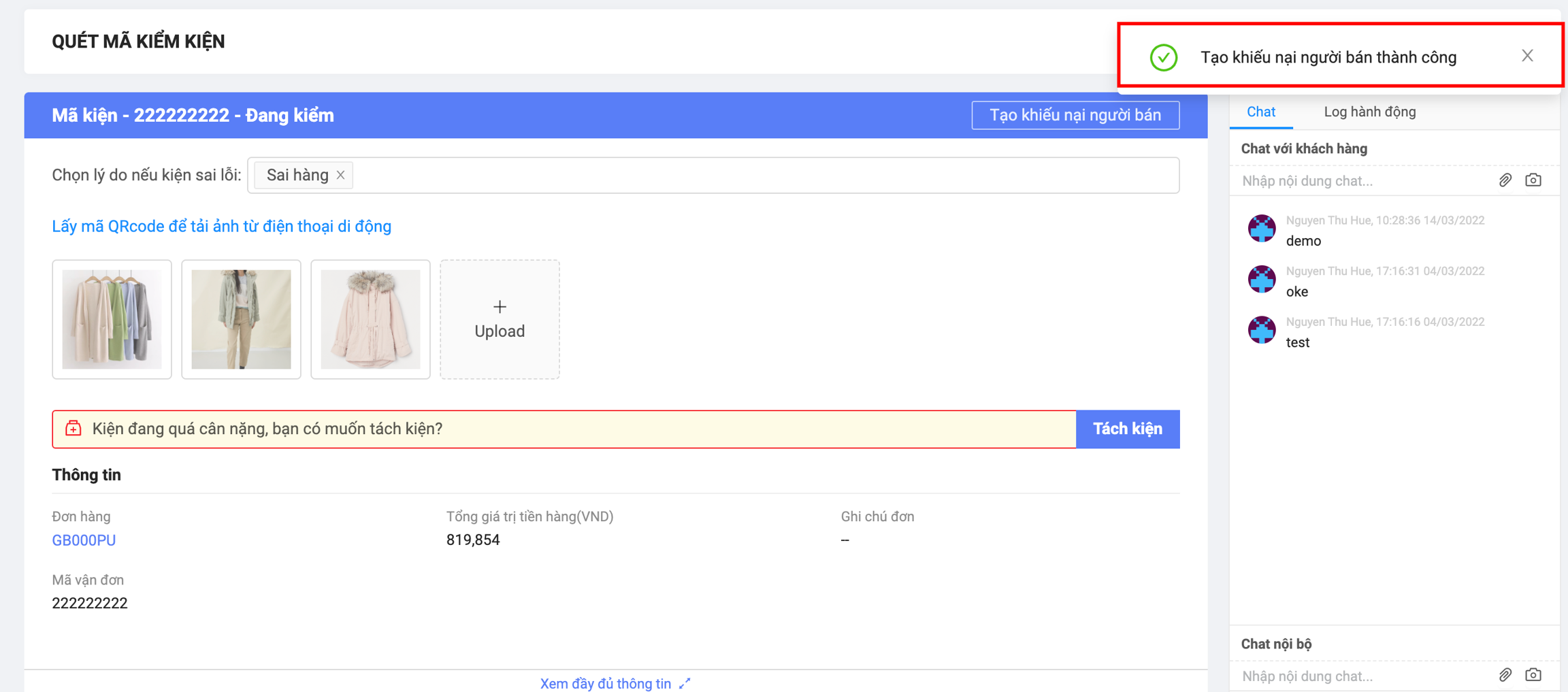 Bước 4: Comment nội bộ chi tiết thông tin sản phẩm sai, lỗi.