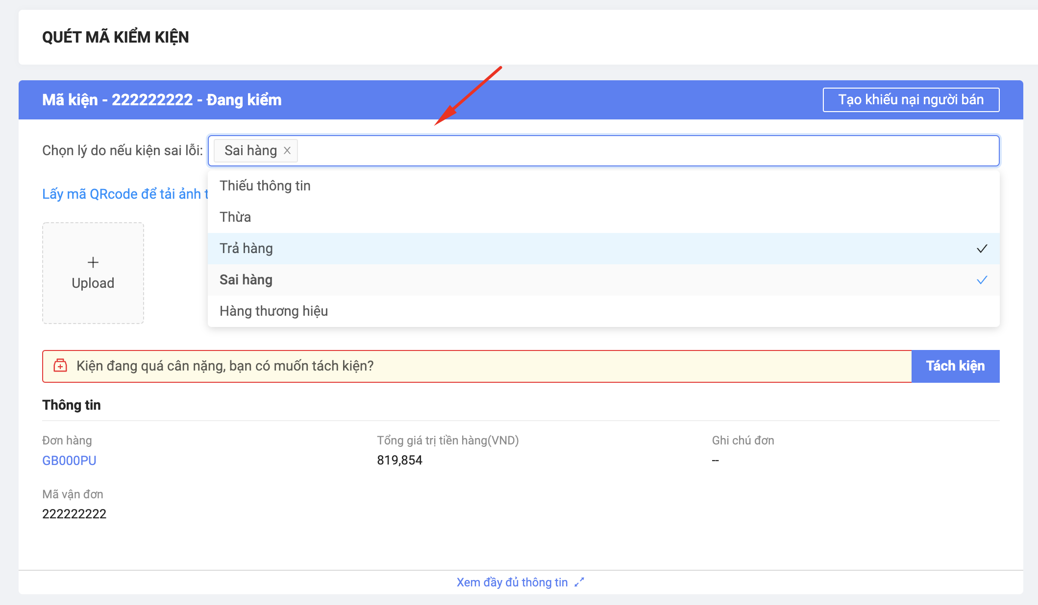 Bước 3: Xử lý hàng sai lỗi