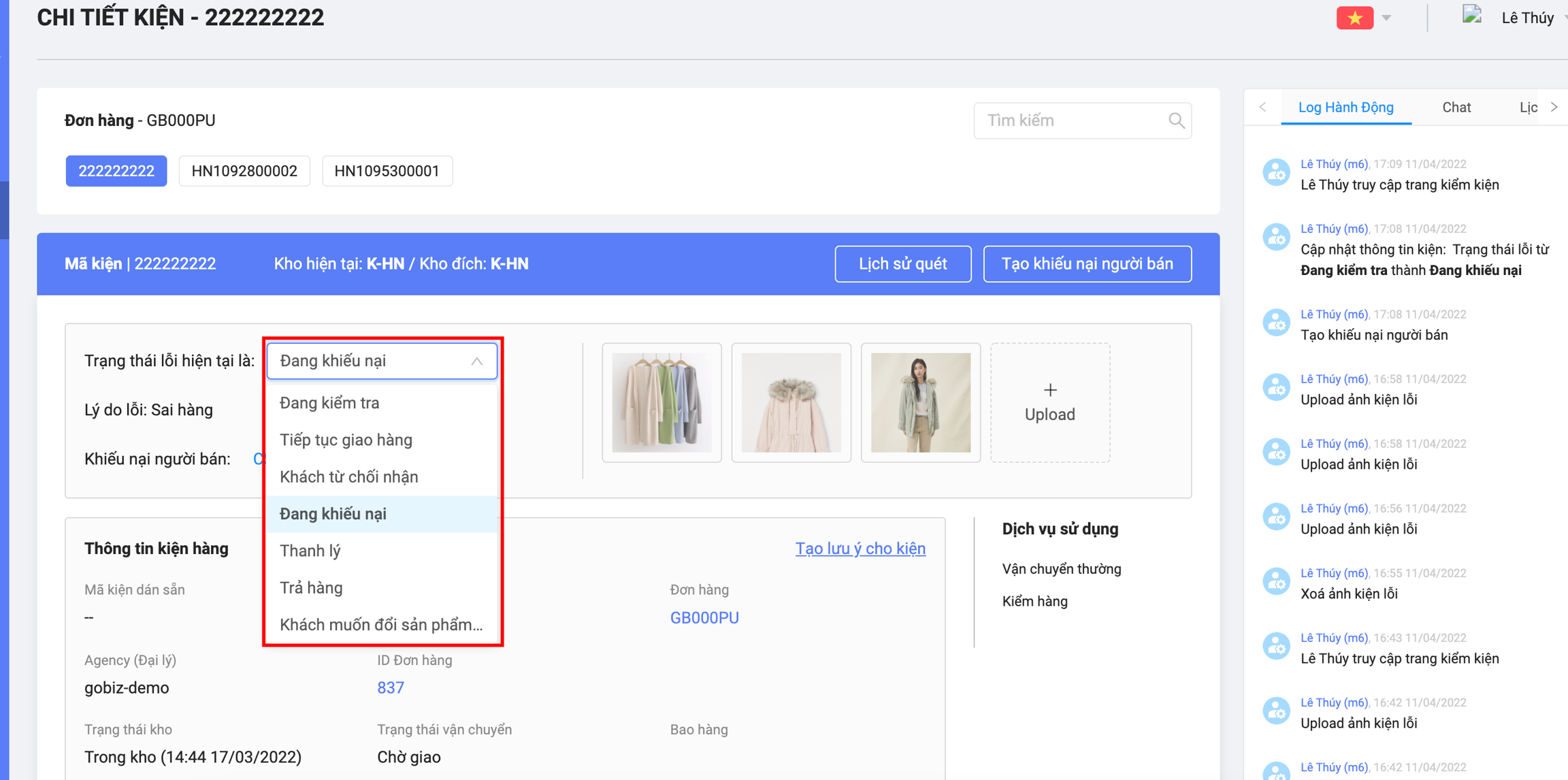 2.3. Comment nội bộ lên đơn nội dung sai/lỗi.