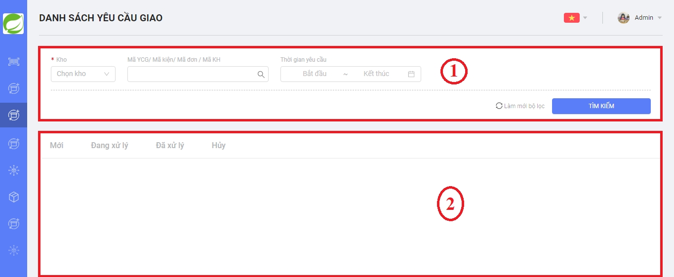 Bộ lọc, tìm kiếm thông tin yêu cầu giao
