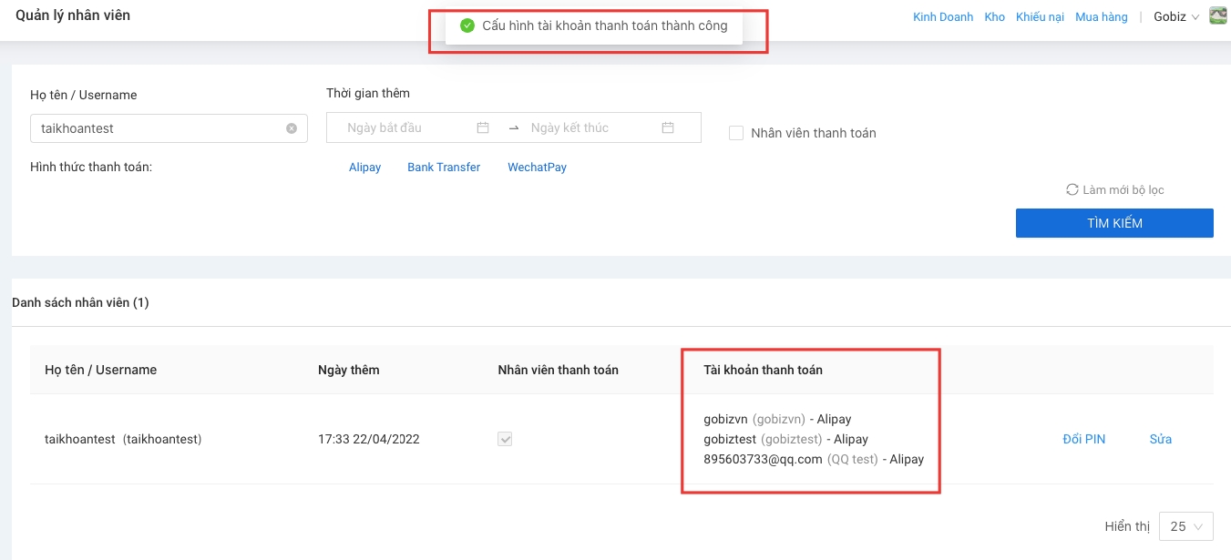 4. Cấu hình tính năng thanh toán cho nhân viên