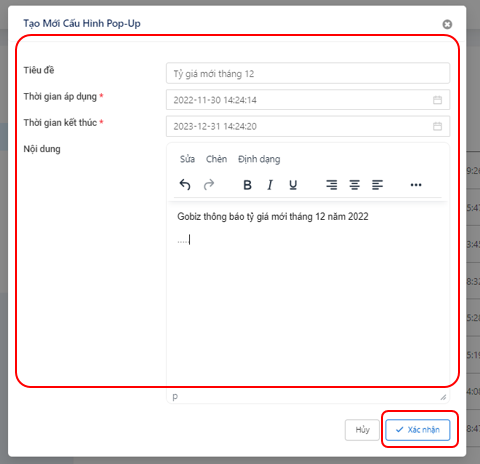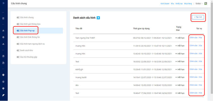 Cấu hình popup là nơi để quý khách thiết lập thông báo popup hiện lên khi khách hàng truy cập website.