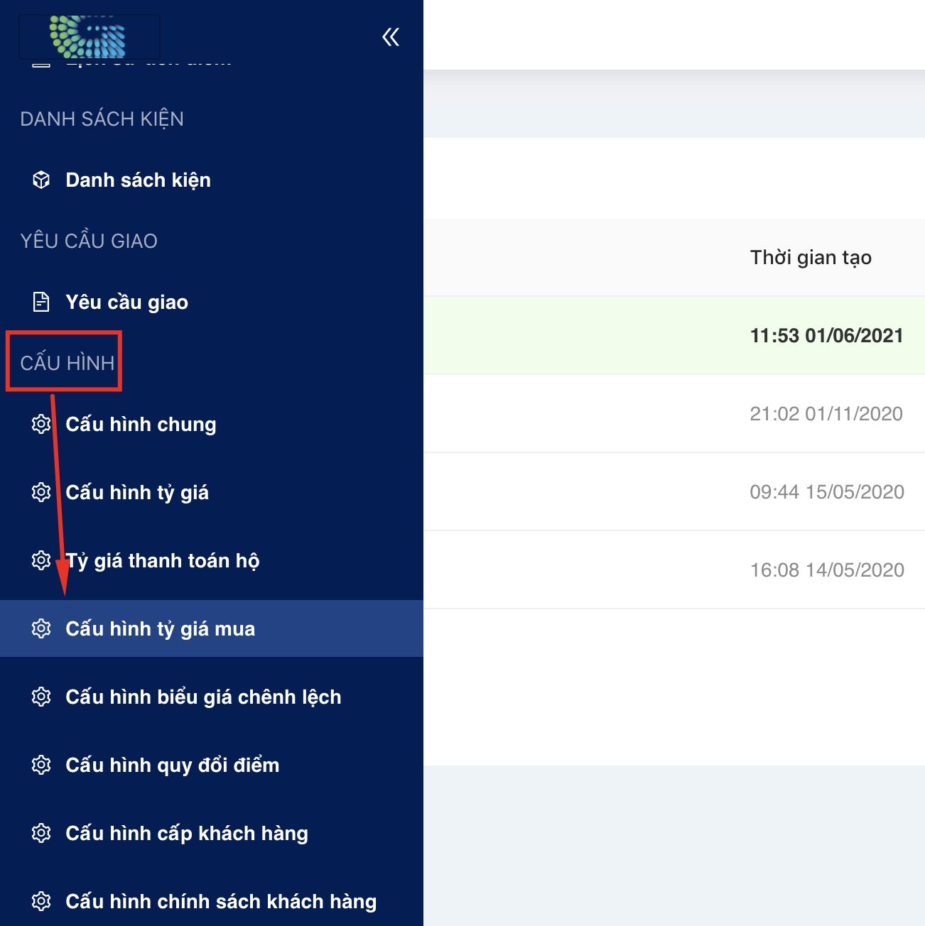 Tại menu chọn Cấu hình => Chọn Cấu hình tỷ giá mua