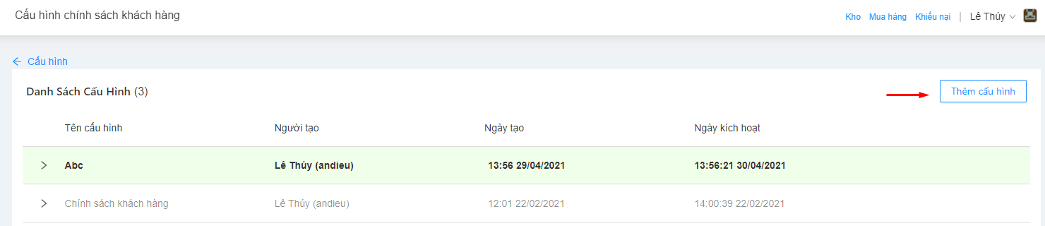 3. Cấu hình chính sách khách hàng